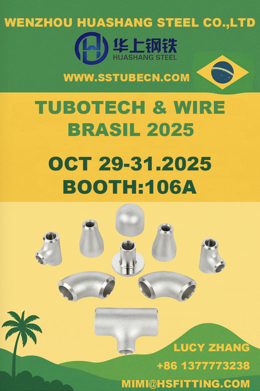 São Paulo, Brasil — 29–31 Oktober 2025 – Wenzhou Huashang Steel Co., Ltd., produsen dan pemasok sistem pipa baja tahan karat terkemuka, dengan bangga mengumumkan partisipasinya dalam Tubotech & Wire Brasil 2025 . Pameran ini akan berlangsung di São Paulo Expo, salah satu acara industri paling berpengaruh di Amerika Latin, dan Huashang Steel akan menyambut pengunjung di Booth 106A dengan rangkaian lengkap pipa, fitting, dan flensa baja tahan karat berkualitas tinggi.